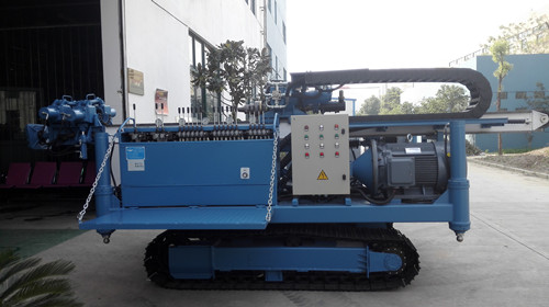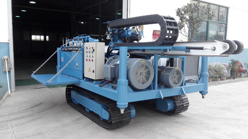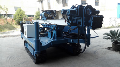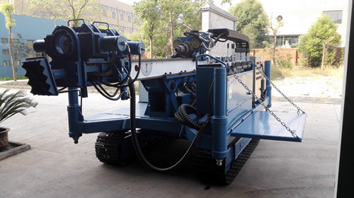 3、配有履帶底盤、高位旋轉平臺、大直徑的支腿油缸、0.9米的滑架、孔口支撐裝置,使鉆機移位、定位極為方便,鉆進時穩定可靠。