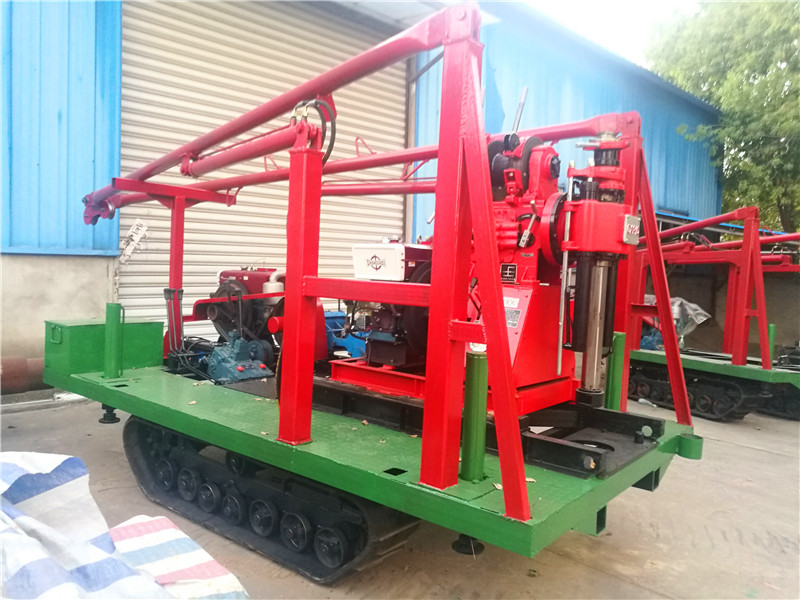 4鉆機、水泵、塔架一體,搬家方便快捷,可自行上下汽車搬家時鉆桿鉆具等一切東西均可放在履帶底盤上一次運走。