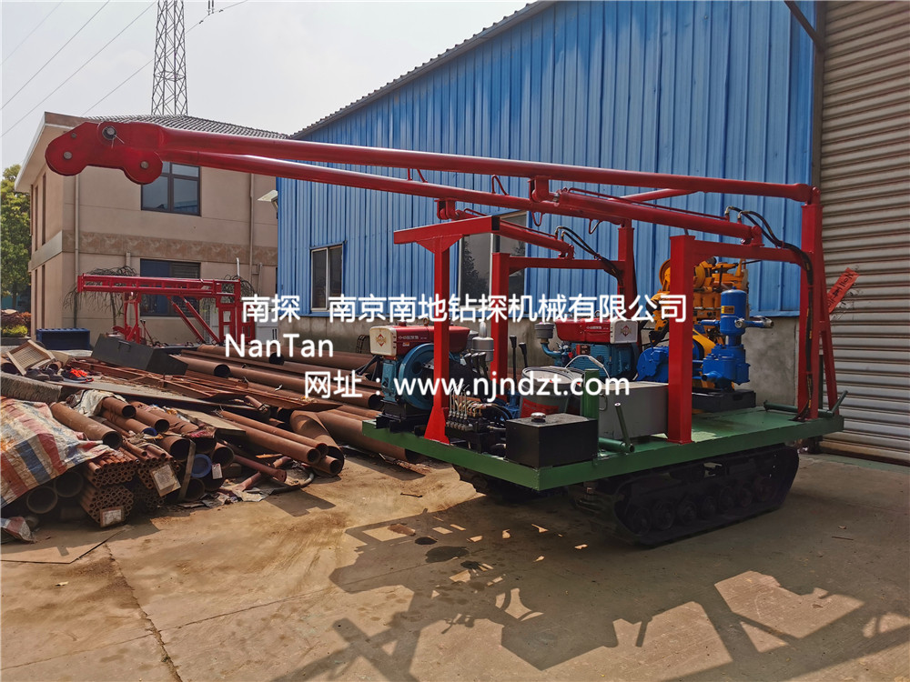 XY-1A-L-02-B-STRZT履帶鉆橡膠履帶底盤、動力(柴油機或電機)XY-1A鉆機、鉆機平臺、液壓支撐腿系統、人字形全液壓起落架、泥漿泵共同組裝在一個機架上。鉆機泥漿泵一個動力一體底座柴油機或電機),橡膠履帶底盤柴油機或電機)帶動,互不干擾,避免單動力變換負荷造成磨損影響施工