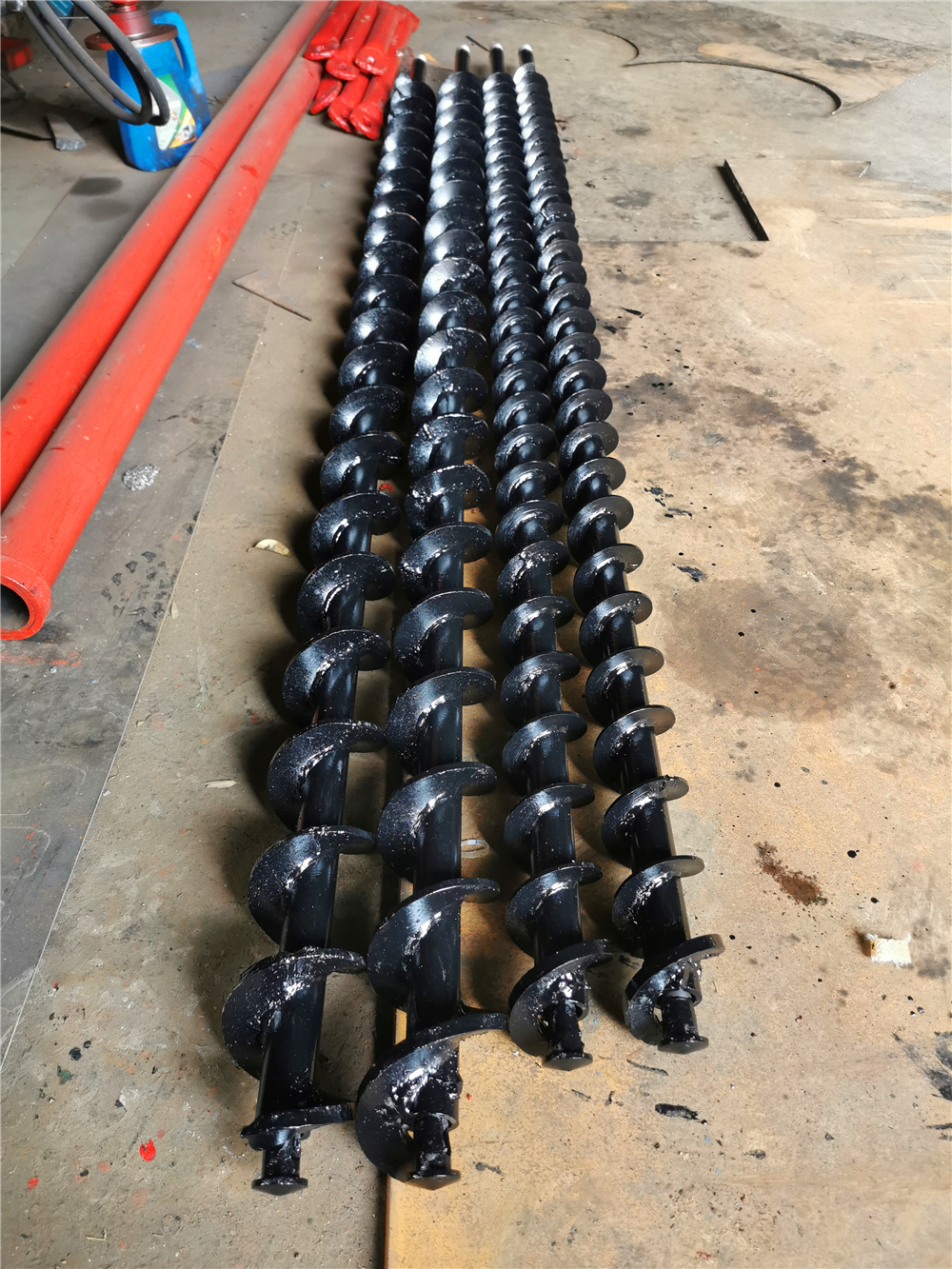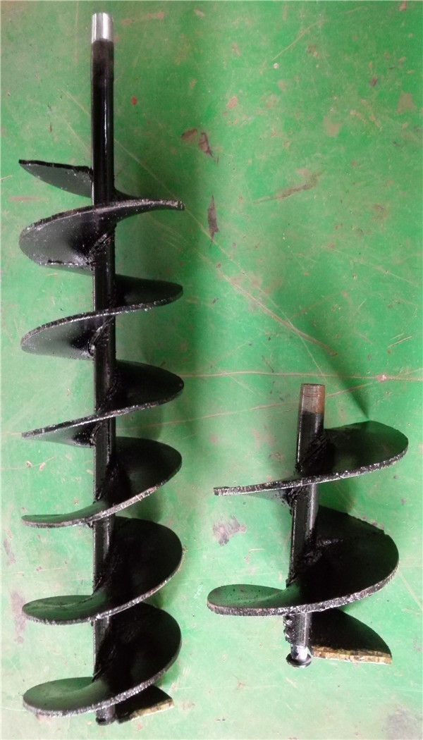 常用提土鉆(麻花鉆、螺旋鉆):葉片直徑:Φ75Φ90、Φ110Φ130、Φ150,大口徑有Φ180、Φ200、250、300、350、400、450、500...常用長度0.5m、1m、1.5m2m、3m,葉片分標準和全葉兩種。