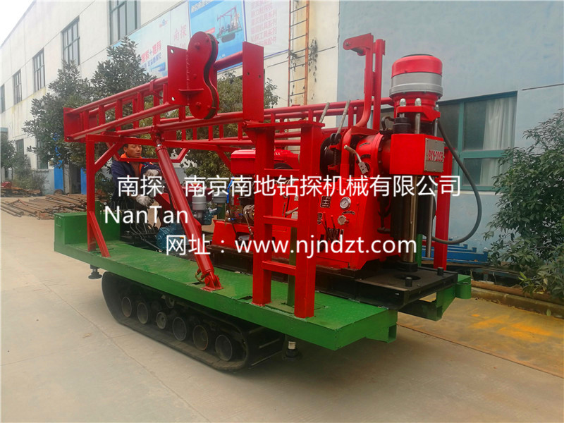 該履帶底盤承載重量達4T,可以裝載各種小型鉆機,如:XY-1-1、XY-1、XY-1A、XY-1A(YJ)、XY-1A-4、XY-1A-5、XY-1B、XY-1B-1、XY-1B-2XY-200、XY-200(YJ)、XY-200B、XY-200B-1、XY-200B-2、GXY-1系列、GXY-2Q、GXY-200B、GYQ-200、GYQ-200A、GK180、GXY-2K、GXY-2C等100-300米鉆機,并可同時載BW160BW160ABW200BW200A型泥漿泵,具有雙塔架折疊式液壓起落鉆塔、行走方便等特點,廣泛適用于公路、鐵路、水電、橋梁、壩基等的工程地質(zhì)勘察、地質(zhì)巖芯鉆探、物理勘察、小型灌漿孔、爆破孔、水井孔和空調(diào)孔的鉆進。