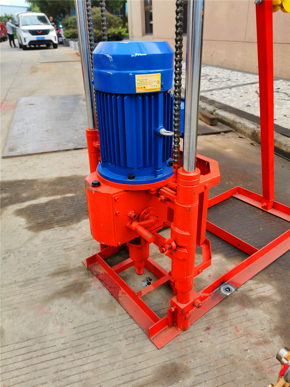 可以2人操作的取芯鉆機!鉆探深度可達30米!采用輕便的汽油機(或電動機可選)作為動力,分體式輕便實用,搬遷十分便利,帶支架穩定可靠,滿足野外車輛無法進入地區時用;鉆機操作簡單,易學易懂。可實現合金、金剛石鉆頭鉆進及麻花螺旋鉆進和不取芯三葉合金鉆頭、復合片不取芯鉆頭引孔鉆進的需求。